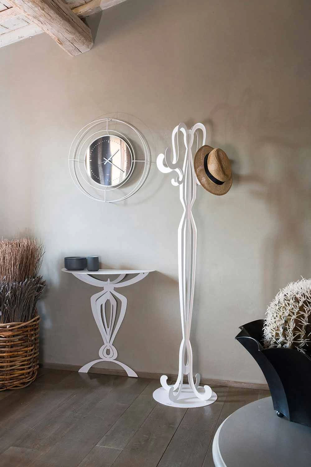 Giunone is een elegante kapstok die wordt gekenmerkt door een unieke stabiliteit die zelfs de zwaarste kleding kan dragen.