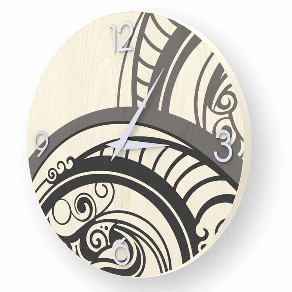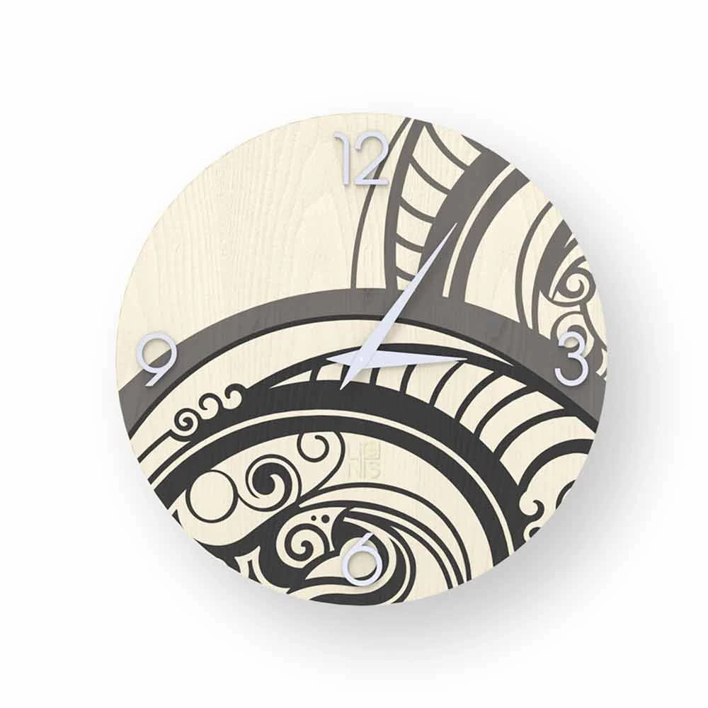 – Warm: eikenhout, zijkanten in weingé kleur en as. De beet is in weingé gekleurde zijkanten en de wijzers en cijfers zijn van natuurlijk aluminium;