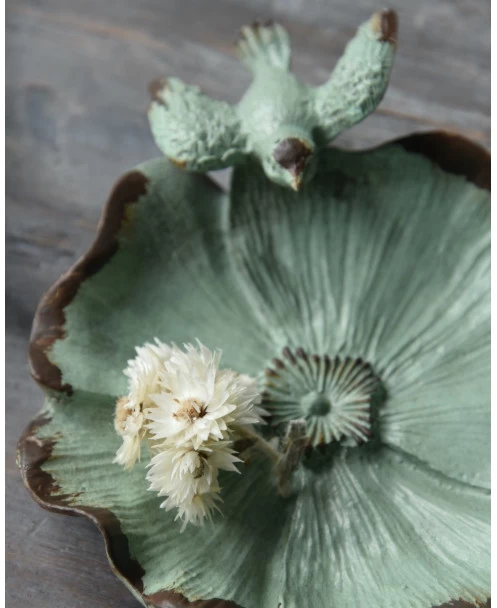 Bloemvorm Antiek Turkoois Schaaltje Met Vogeltje