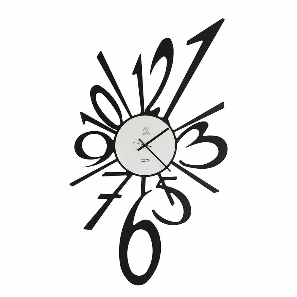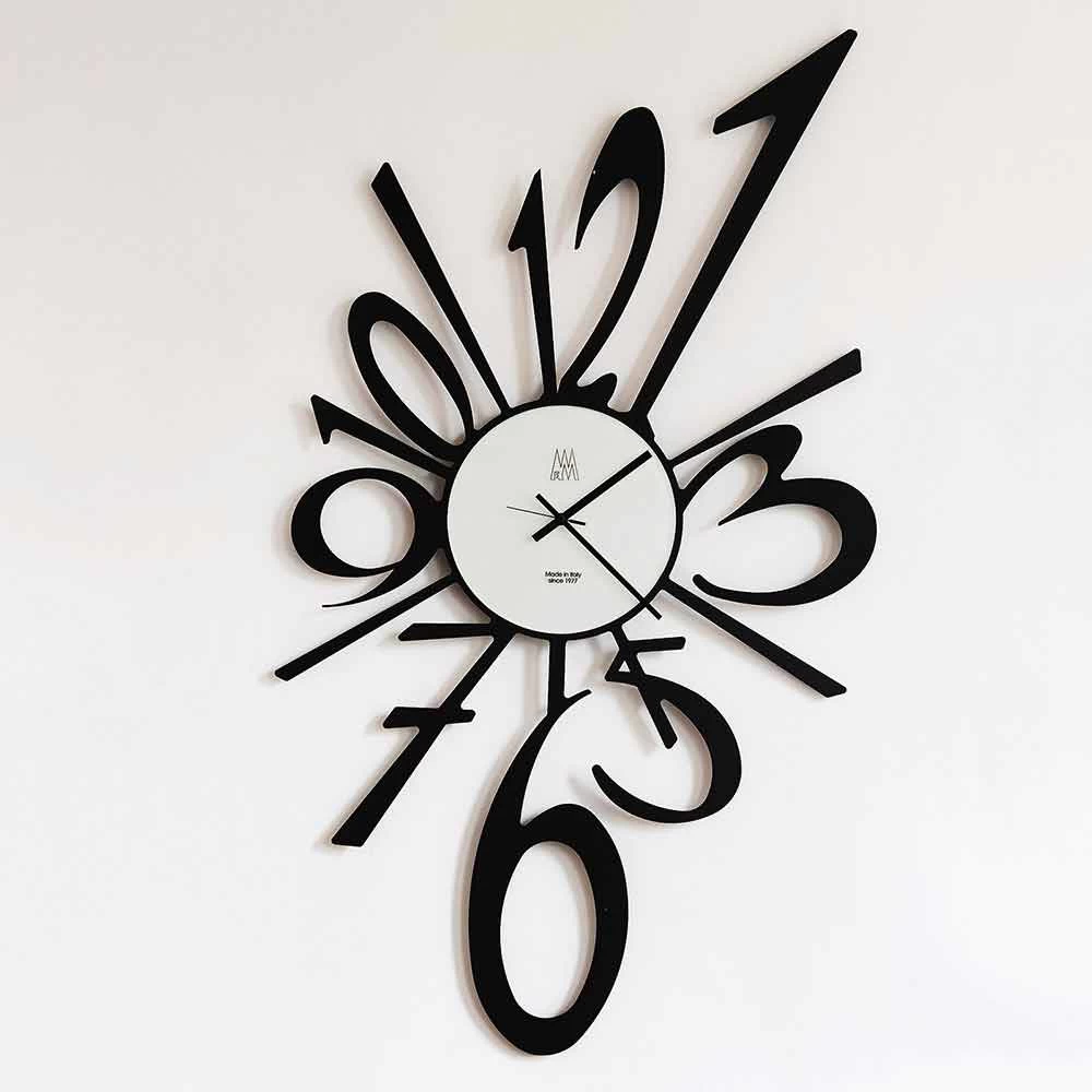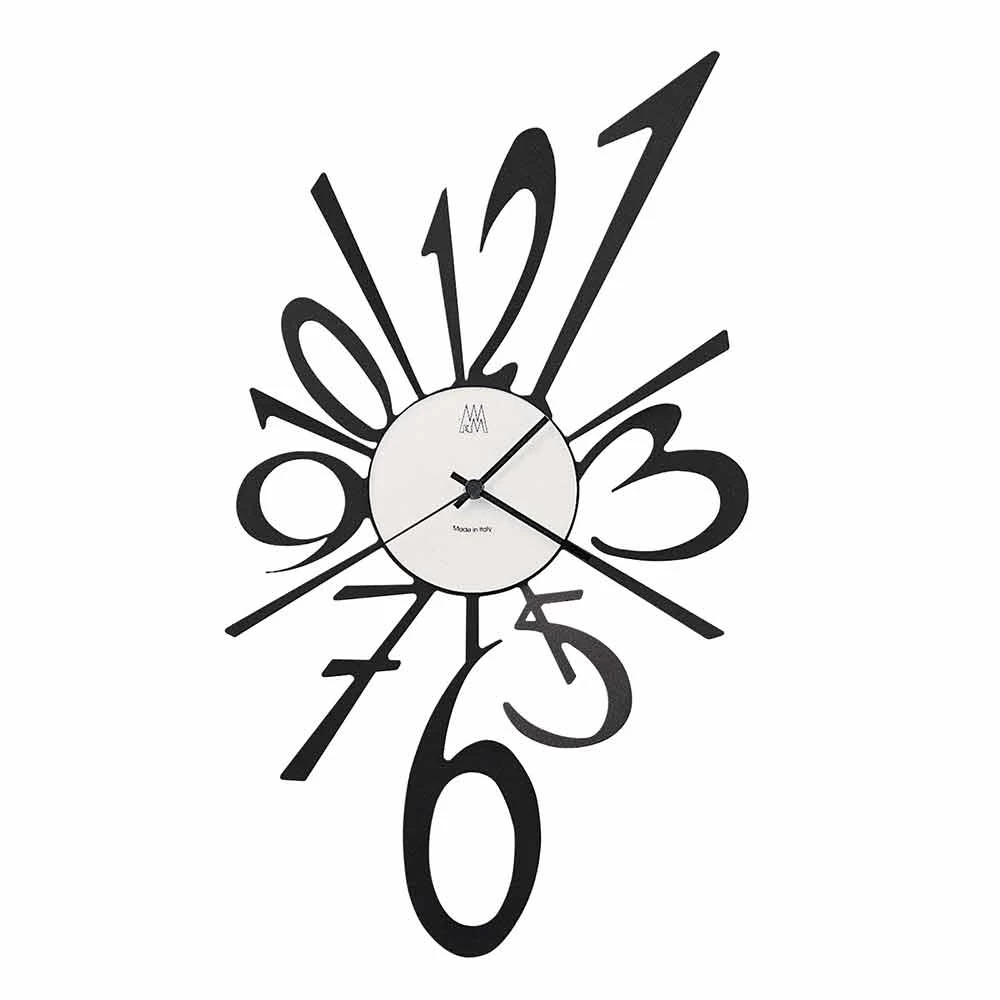 Wandklok in moderne stijl, gemaakt in Italiƫ, handgemaakt in zwart of aluminium geschilderd ijzer.