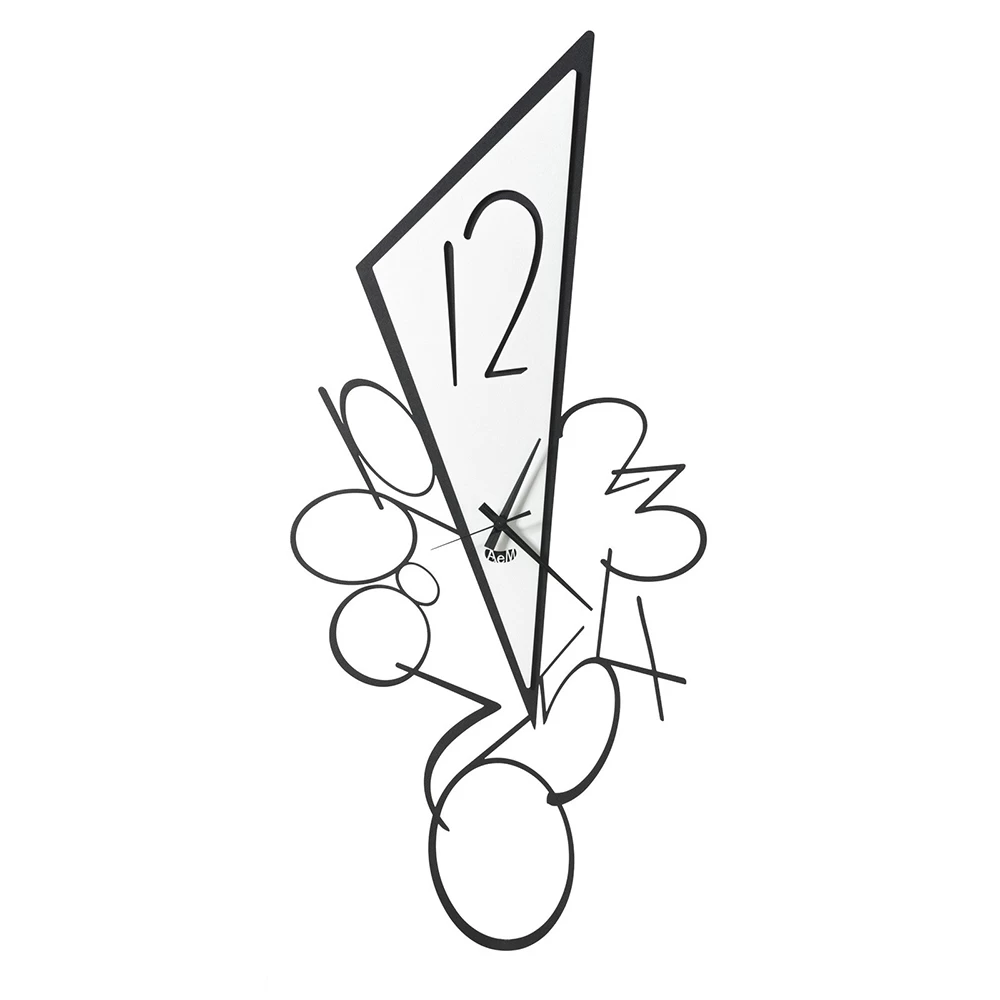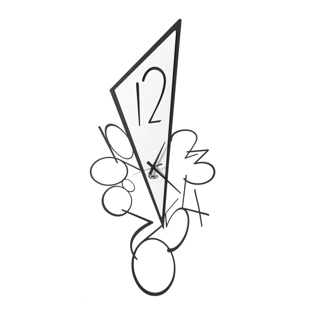 Driehoekige design ijzeren wandklok in 2 maten en 3 afwerkingen gemaakt in Italië.