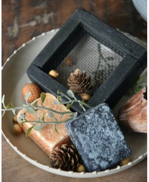 Geur-set twee Amber blokjes met schaaltje, rasp en decoratie. Dit leuke complete set van een taupe/zand kleurig metalen schaaltje, een zwarte retro rasp, een Amber blokje met Sandalwood geur, een Amber blokje met Musk geur en verschillende decoratie takjes en vruchten die het geheel afmaken (zit samen in een zwart organza zakje). Het complete set is ook erg leuk om cadeau te geven, vul dan de tekst voor het kaartje in en vergeet deze niet op te slaan. U kunt het gezellige geheel een mooi plekje geven. Wanneer de Amber blokjes iets minder zijn gaan ruiken kunt u er met de rasp een stukje afraspen om zo weer optimaal van de geur te genieten.