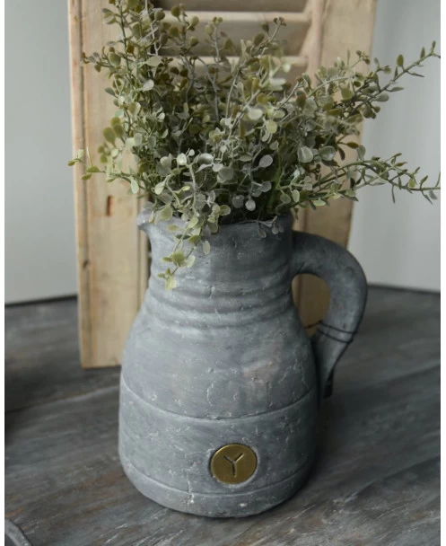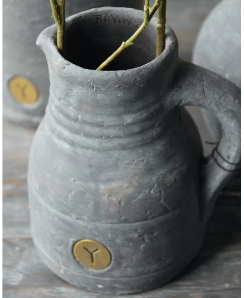 Grijze aardewerk kan Vintage, Brynxz. Dit leuke kannetje van aardewerk met een Vintage grijze afwerking in van het merk Brynxz. De kan in opgebouwd met een aantal lijnen als reliëf, een groot oor en een schenktuit. De kan leent zit dan ook goed om er mooie takken of bloemen op te zetten. Met de mooie takken van IB Laursen of van Brynxz ontstaat er al snel een mooi geheel. De kan is niet 100% waterdicht, we adviseren altijd bij aardewerk of zink een binnenvaas te gebruiken.
