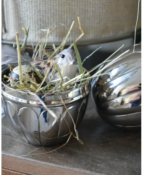 Groot antiek-look zilver kleurig ei met reliëf, IB Laursen. Dit prachtige ei bestaat uit twee delen die aan de buitenkant een iets verouderde zilverkleur heeft. Het ei heeft een mooi patroon als reliëf met glooiende lijnen. U kunt het ei eventueel vullen of in zijn geheel decoreren. Het ei is ook in een gouden antiek-look verkrijgbaar (zolang de voorraad strekt).