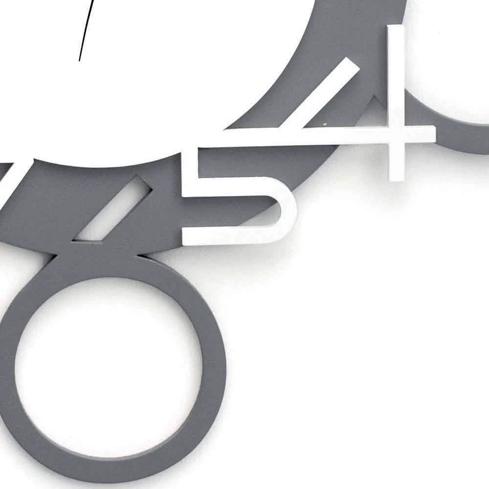 Grote design wandklok in wit en grijs hout, met name made in Italy.