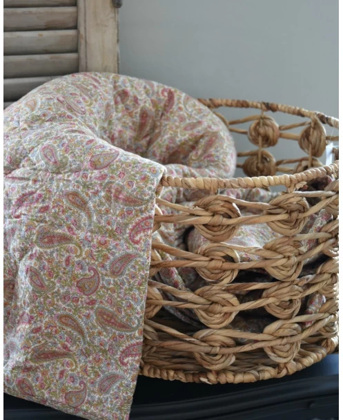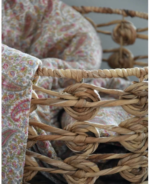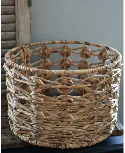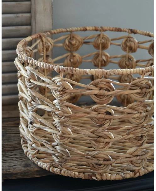 Handgemaakte mand met cirkel patroon, groot per stuk. Deze prachtige mand is in een rond model met patroon van cirkels/rozen die de gehele zijkant herhaald. Het mooie vakwerk van deze bijzondere vlecht patronen maakt de mand tot een prachtig geheel. De mand is stevig en kan heel divers worden gebruikt of gedecoreerd. bv in de woonkamer voor een lekkere plaid/quilt en wat kussens, als wasmand…… Dit model is ook in een kleinere maat verkrijgbaar.