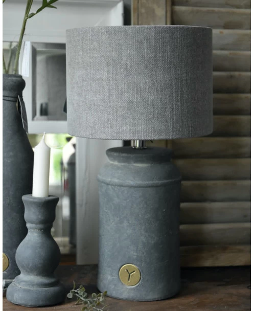 Lampenvoet van aardewerk Majestic grijs rond opgaand, Brynxz. Deze mooie elegante lampenvoet is van aardewerk gemaakt en heeft een recht opgaand model met een iets opgesierde bovenrand. Aan de voorzijde zit het Brynxz logo verwerkt en op de voet staat een normale fitting met een kogel top zodat u de kap altijd recht kunt zetten. an de lampenvoet zit een zwart draad snoer met schakelaar. U kunt de lampenvoet combineren met de gehele Majestic serie van Brynxz, die al jaren wordt uitgebreid met nieuwe modellen.