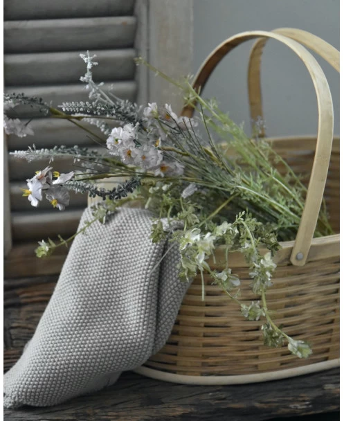 Mand met twee hendels M, IB Laursen. Deze prachtige ovale mand heeft een mooi vlechtwerk. Het vlechtwerk is van dun hout gemaakt, ook de bodem heeft een mooi patroon. Aan de mand zitten twee hengsels die in verschillende posities kunnen worden gezet. U kunt de mand leuk vullen met een kleed en bloemen bijvoorbeeld. Hij kan in iedere ruimte in huis worden gedecoreerd.