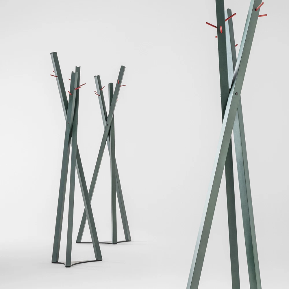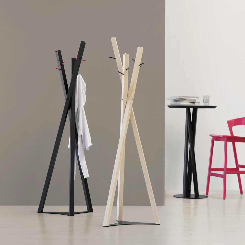 Vloerhangers gemaakt in Italiƫ met structuur in massief essenhout en haringen en voet in geverfd metaal . Dit moderne en originele meubelstuk is een uiterst praktisch object dat ideaal is voor de meest uiteenlopende kamers van het huis, van de ingang via de slaapkamer tot aan de woonkamer. Het eenvoudige maar creatieve ontwerp maakt het een perfecte keuze voor diegenen die functionaliteit en design willen bereiken met een enkel product, waardoor ze jassen en jacks weten te organiseren en tegelijkertijd een decoratief object vertegenwoordigen dat een perfecte harmonie kan creƫren met het omringende meubilair.