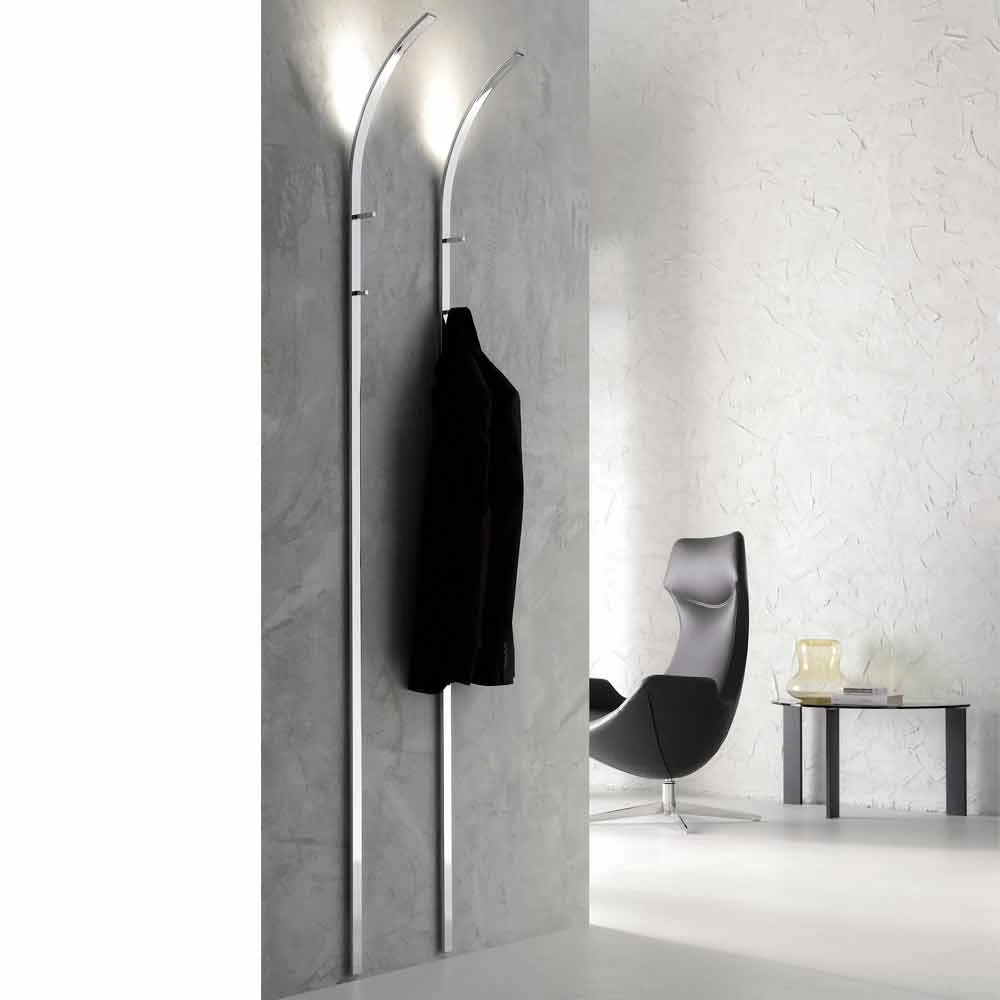 Kleerhangers minimalistische design wandlamp gemaakt in Italië met geverfde metalen structuur uitgerust met onzichtbare in elkaar grijpende wandhaak, 2 haken en LED-verlichting.