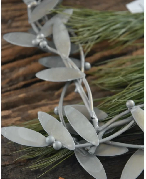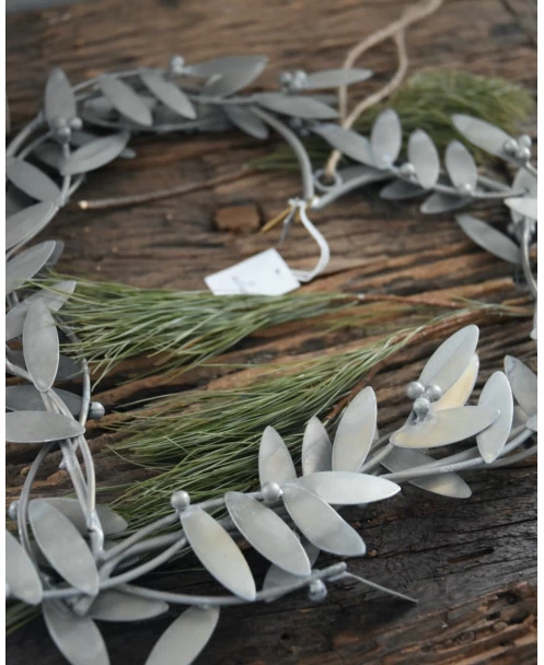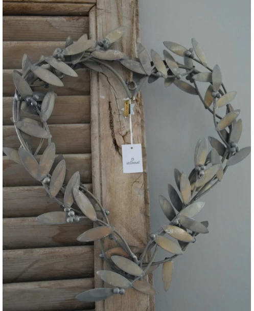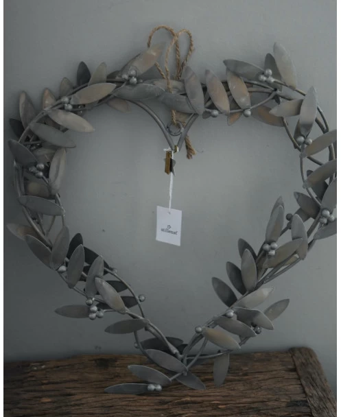 Mistletoe hart krans IB Laursen. Deze krans is in vorm van een hart opgebouwd uit Mistletoe blaadjes en bessen. De krans is aan beide zijden mooi met de Mistletoe bedekt, zink grijs van kleur en heeft een touw zodat hij makkelijk op te hangen is. U weet vast wat ze zeggen als u onder de Mistletoe staat…….!