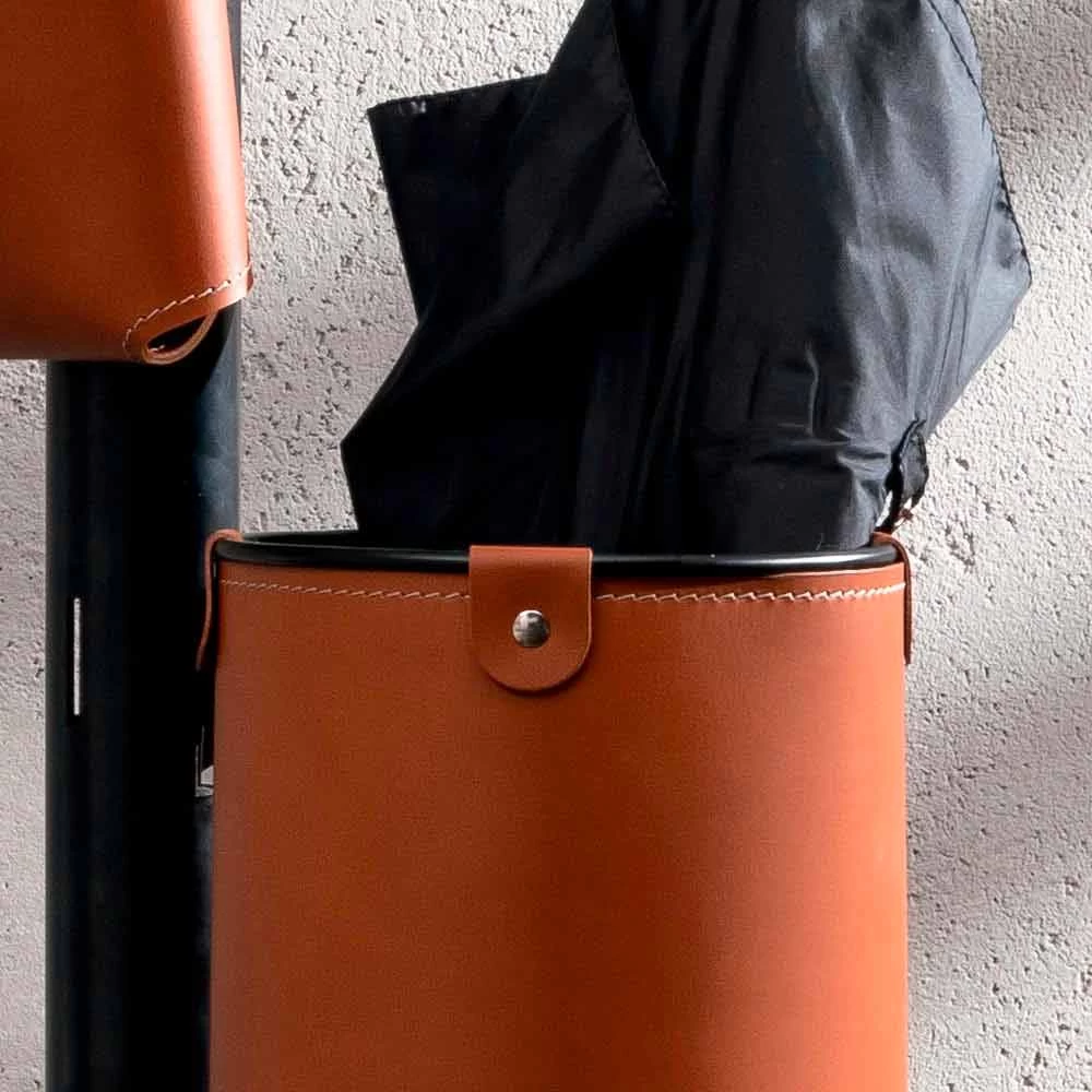 Kleerhanger in gekleurd geregenereerd leer, handgemaakt in Italiƫ.