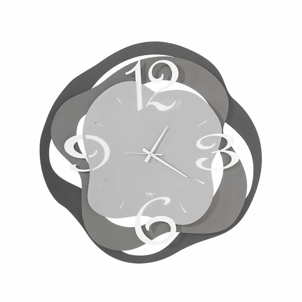 Wandklok in moderne stijl, handgemaakt in Italiƫ in antraciet, leisteen, wit en aluminium of beige, zand, ivoor en wit ijzer.