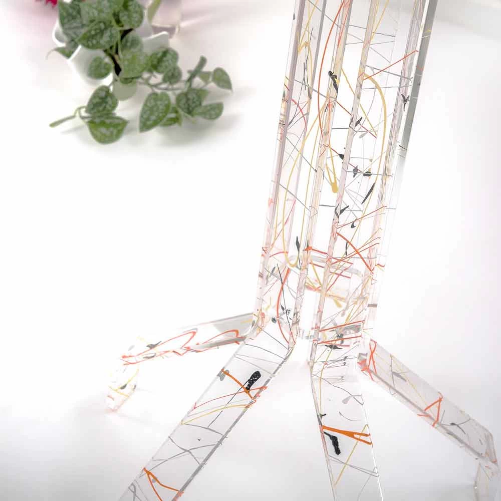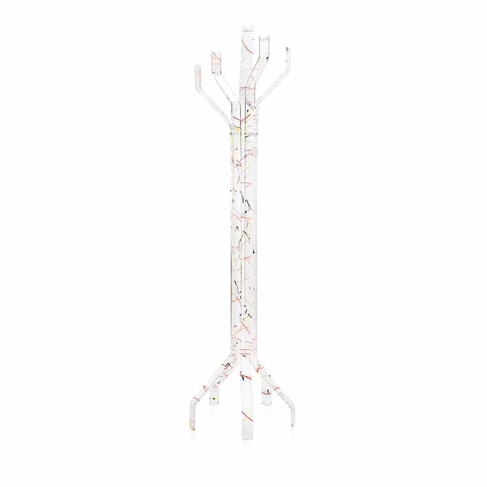 Andrea is een asymmetrische kleerhanger met 5 armen, gemaakt van 100% nieuw PMMA-plexiglas van polymeerpolymeer met spuitverfafwerking waardoor het veelkleurig is.