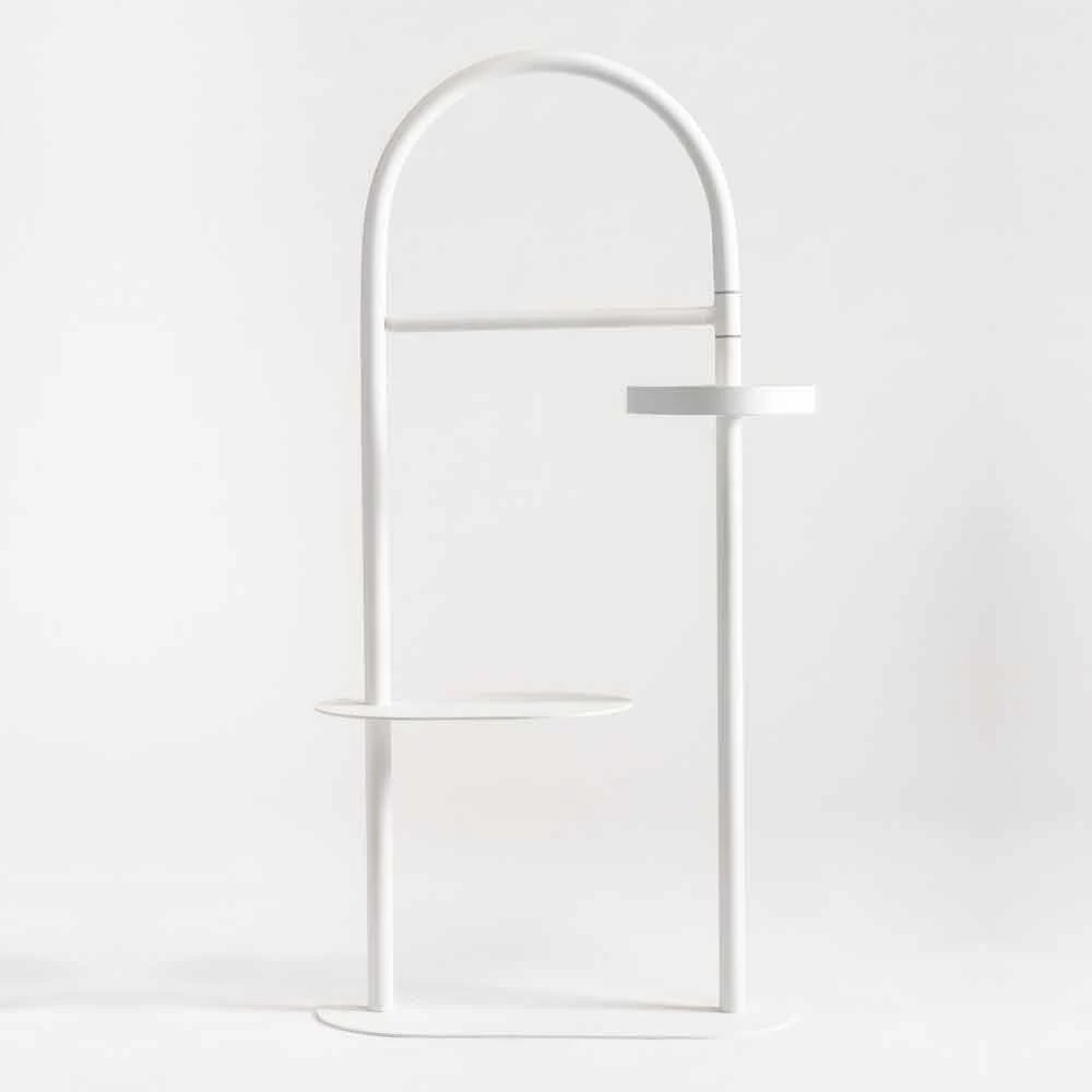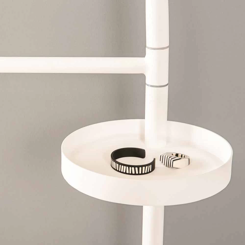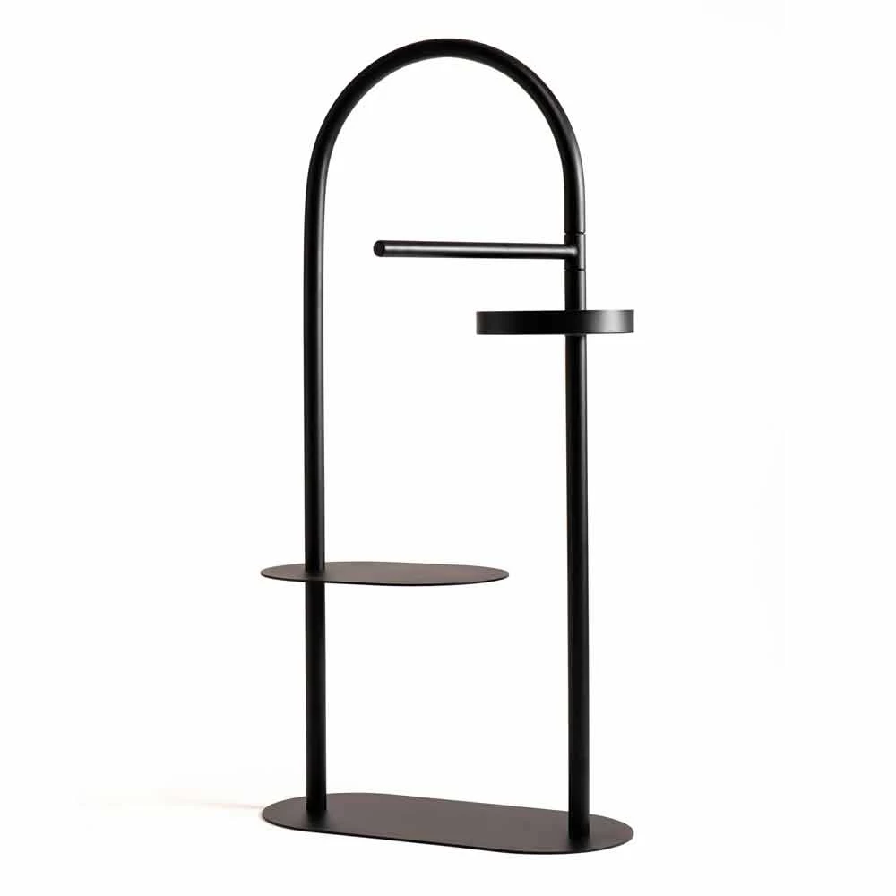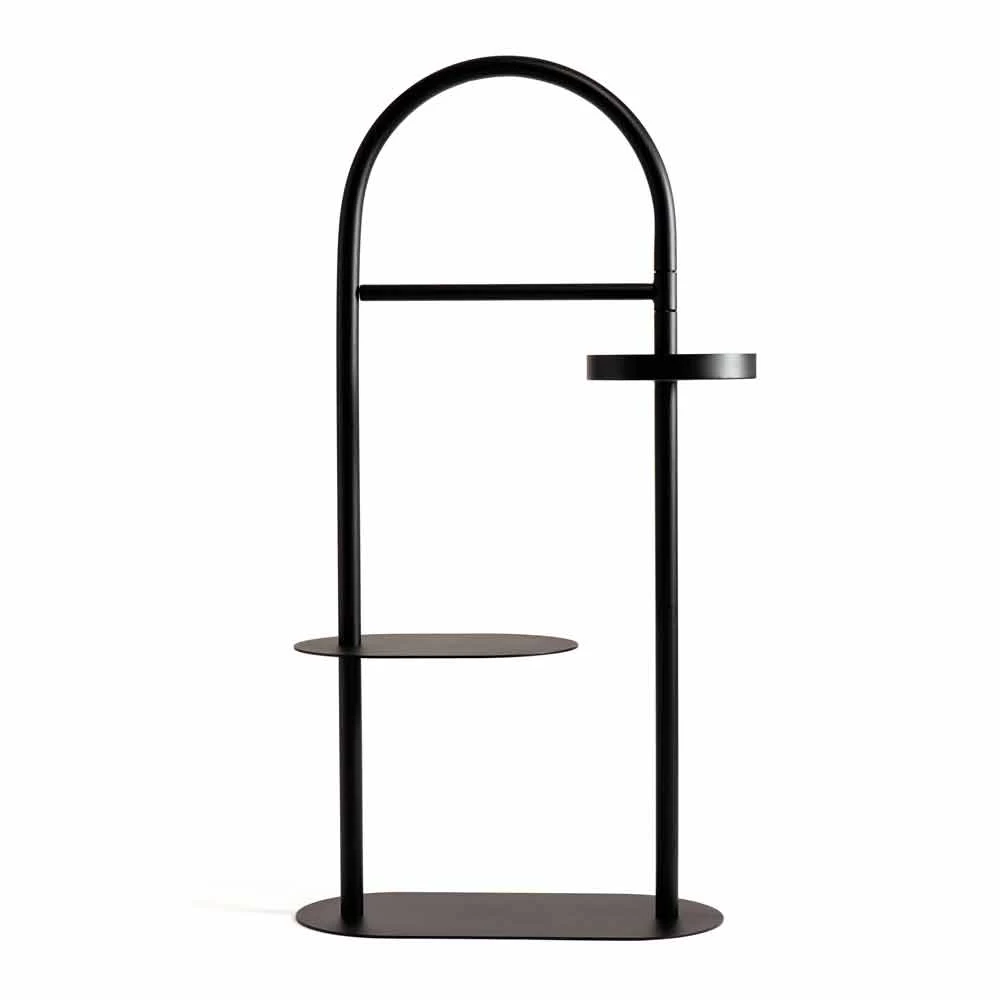 De valetstandaard is een element dat essentieel is voor het organiseren van kleding in uw slaapkamer of inloopkast en het is daarom belangrijk om de juiste te kiezen rekening houdend met uw behoeften en de inrichting eromheen. Dit product is volledig Made in Italy en wordt gekenmerkt door een minimaal maar indrukwekkend ontwerp dankzij de halfronde boogvorm die een praktische en functionele zwenkarm wordt. De structuur is gemaakt van RAL-geverfd staal en heeft twee praktische planken, ideaal voor het plaatsen van voorwerpen zoals glazen, sleutels of andere accessoires die je bij de hand wilt hebben.
