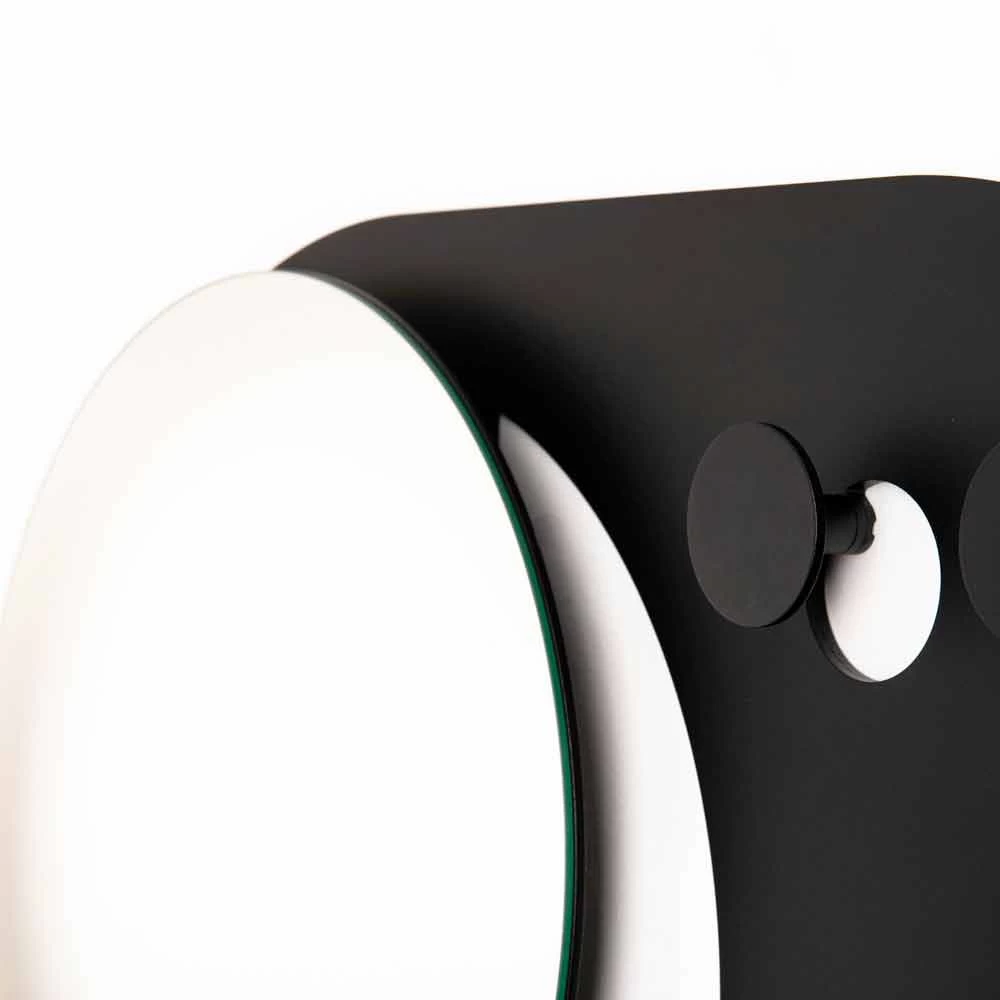 Moderne wandkapstok van staal met haken en ronde spiegel Made in Italy.