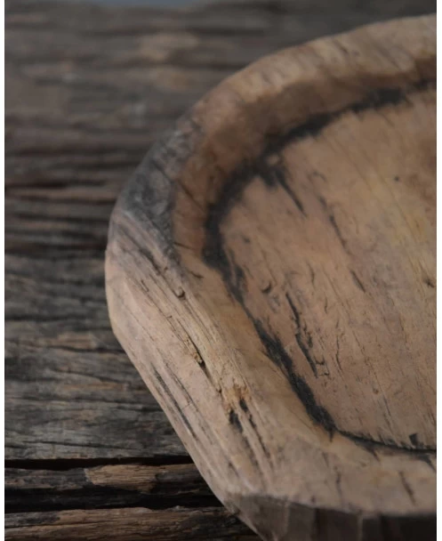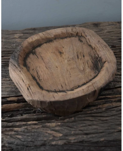 Nepalese schaal met kleine voetjes. Deze oude Nepalese schaal is uniek in zijn vorm en prachtig gemaakt. De schaal is uit een stuk gemaakt en heeft vier kleine pootjes.