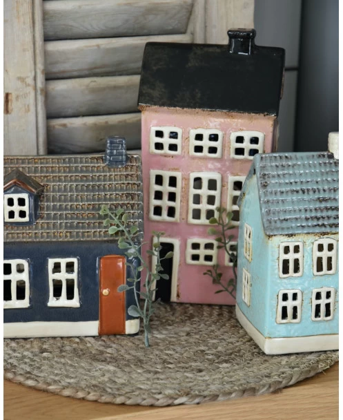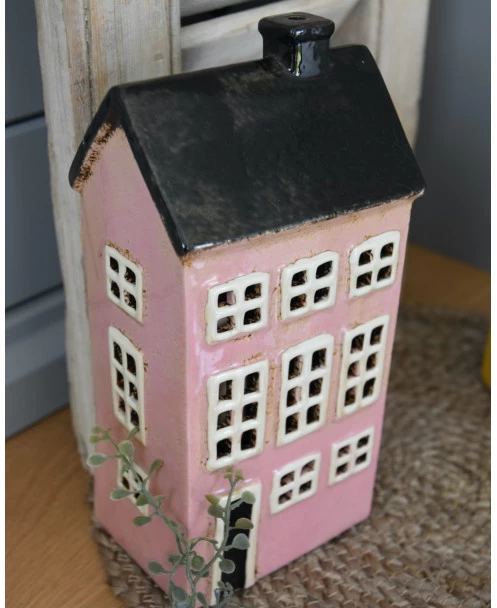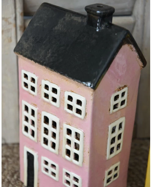 Nyhavn Pakhuis theelicht roze met zwart dak en schoorsteen, IB Laursen. Dit leuke pakhuis in een zacht roze kleur heeft een zwart dak met schoorsteen en heel veel ramen die overigen allemaal open zijn, zodat het schijnsel van het kaarsje/waxinelicht een mooie warme huiselijk sfeer geven. Het pakhuis ins van mooi zwaar ceramiek gemaakt en heeft een licht glas. De pakhuizen zijn in veel verschillende modellen en kleuren verkrijgbaar, zodat u een mooie combinatie kunt maken van uw eigen Deense haven.