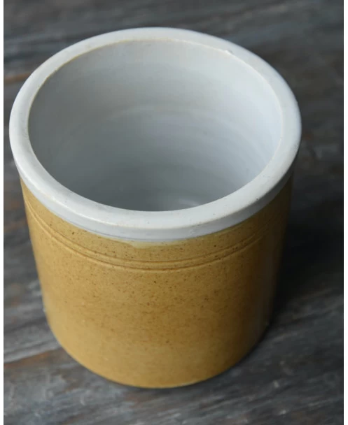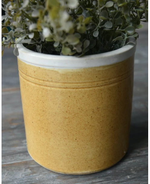 Oker pot recht met randje Unique, IB Laursen. Deze pot is in een recht model met een klein lichter gekleurd randje van boven. Het mooie materiaal en de prachtige oker kleur geven deze handgemaakte pot zijn unieke uitstraling en karakter, geen enkele pot is identiek. De pot heeft deze antiek look gekregen die helemaal van nu is, hij komt uit de Unique serie van het Deense merk IB Laursen. U kunt de pot decoreren met een plant, of bv met houten lepels in de keuken…..