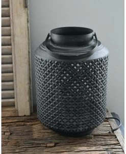 Oude zwarte leemmand. Deze prachtige gevlochten mand is zwart heeft mooie details en gebruikers schade. Dit geeft veel karakter aan de mand. De mand heeft niet heel veel nodig, een mooie droogbloem toef, of wat gedroogde bonen voldoet al.Â
