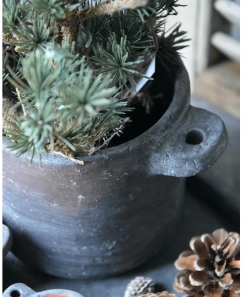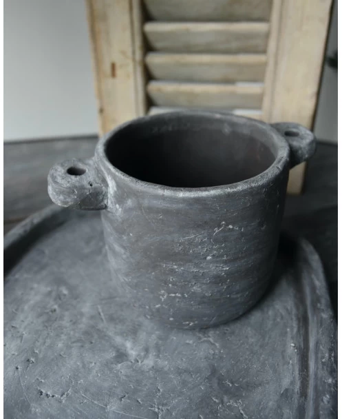 Planter Pot Met Oren Vintage Grijs Groot, Brynxz