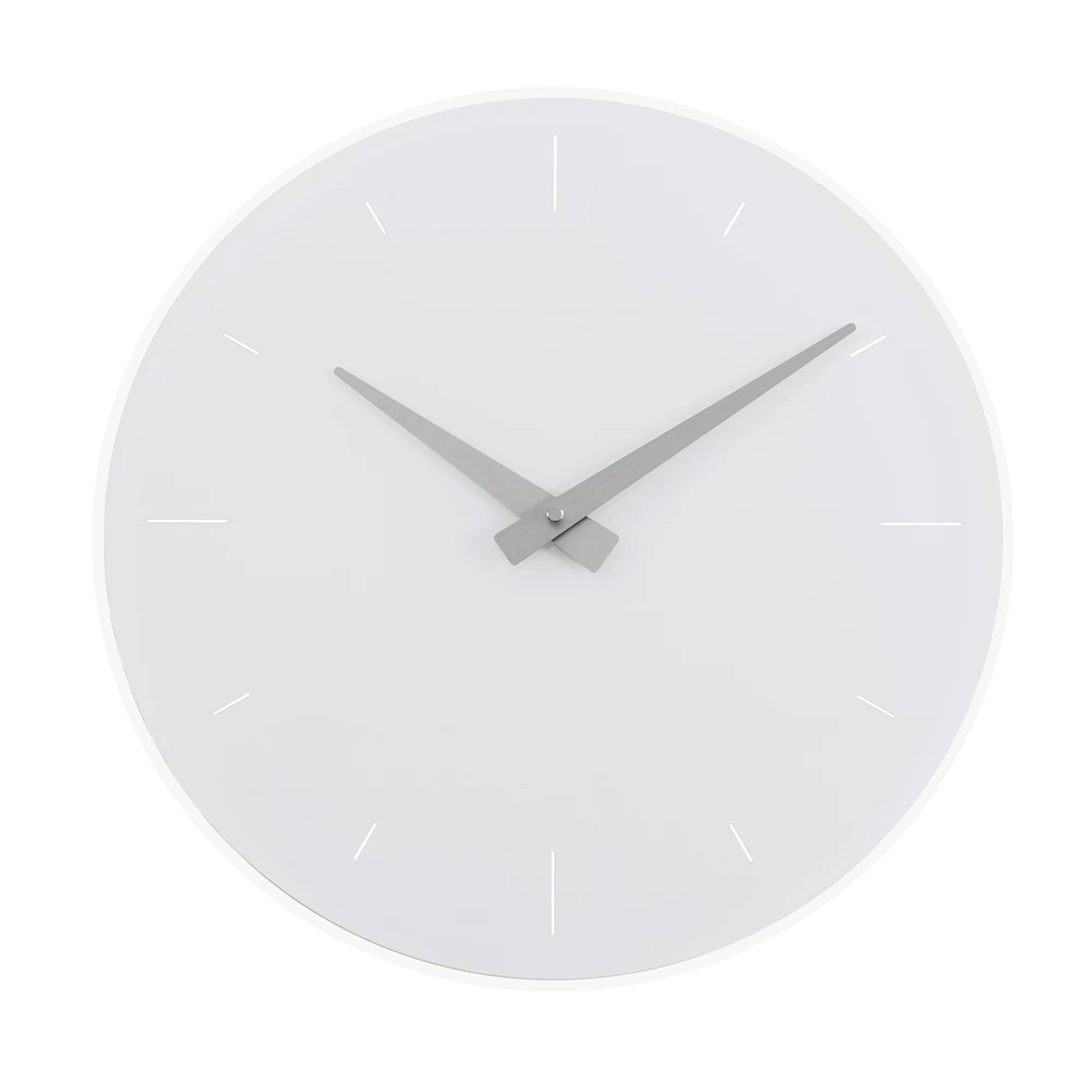 Deze ronde design wandklok is gemaakt van acrylkristal van tweekleurig nieuw polymeer: de basis, in full colour, wordt versterkt door de transparante gieting op het oppervlak, versierd met frezen die de kostbaarheid van het materiaal versterken.