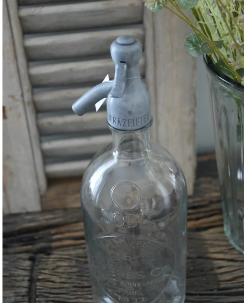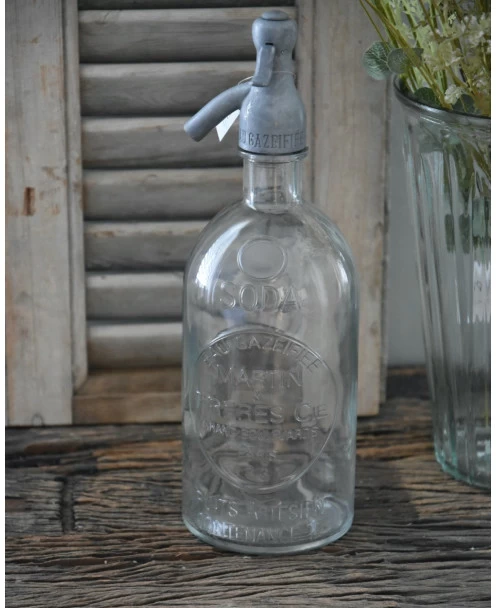 Shaffon fles, IB Laursen per stuk. Deze leuke decoratieve fles is van transparant glas met een mooie glazen opdruk aan de voorzijde, het zinken bovenstuk maakt de shaffon fles compleet. U kunt de fles leuk decoreren in de keuken op een plank of in de vitrinekast. De fles is nieuw en van het Deense merk IB Laursen.