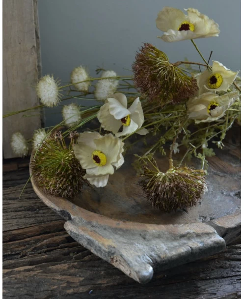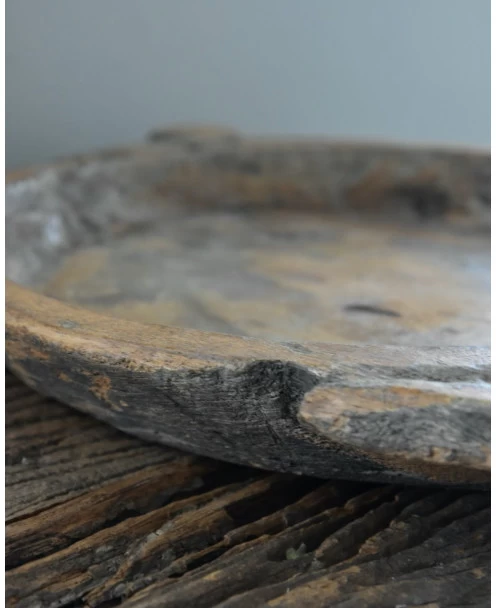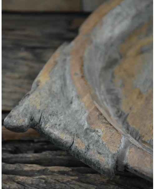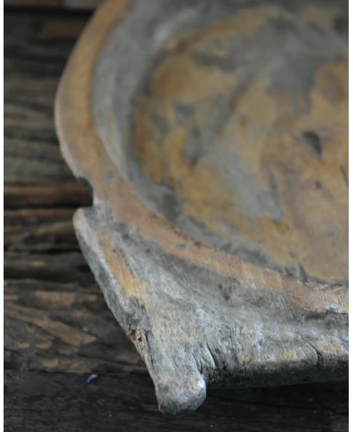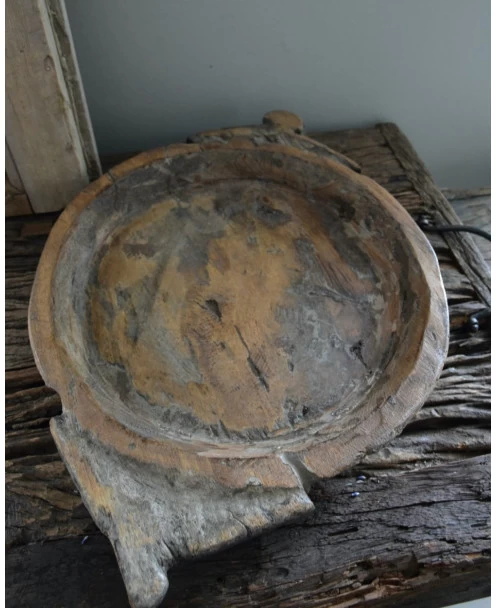 Uniek houten chapati met oren. Deze oude houten chapatie heeft twee oren en is prachtig verouderd. De kleuren in het hout en de slijtage geeft een prachtig karakter aan dit item. De chapati komt uit de collectie van IB Laursen.Â