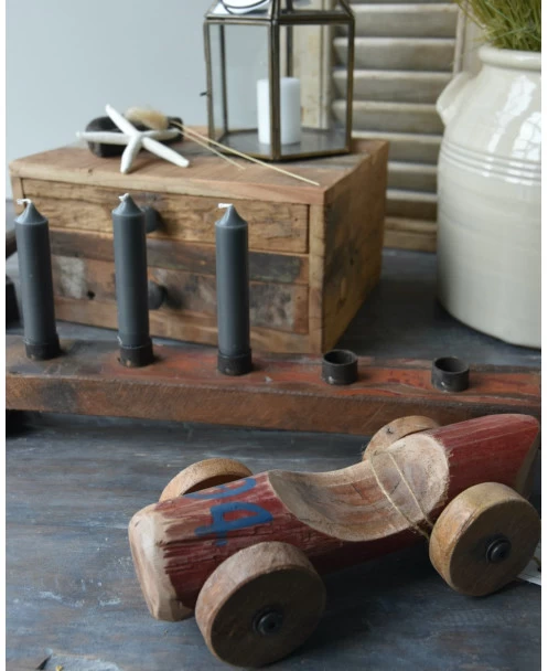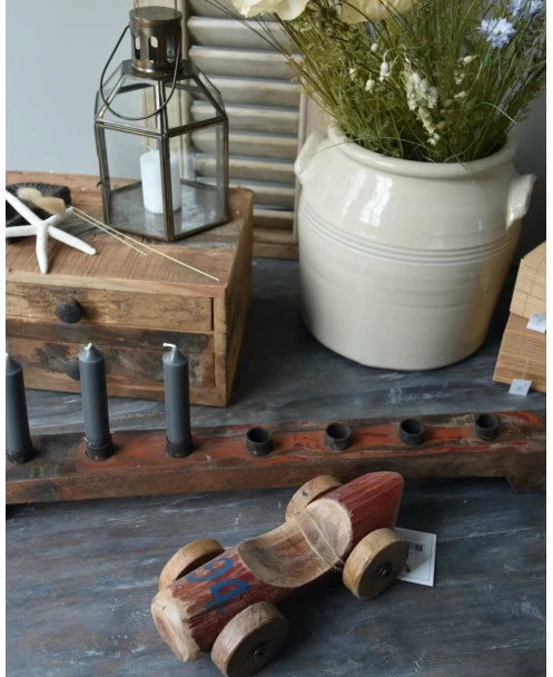 Unieke rode auto van hout met blauw nr 94, IB Laursen. Deze stoere race auto is van gebruikt hout met de hand gemaakt, hierdoor is de auto uniek en vol karakter. De auto heeft een donker rode kleur met in het blauw nummer 94 erop. Ook de wielen zijn van hout en met zijn geleefde uiterlijk is het echt een eye-catcher. U kunt de auto als decoratie showen in een mooie vitrinekast, op een bureau of lage kast….. Deze unieke auto komt uit de Uniq lijn van IB Laursen en er is er ook echt maar 1 van.