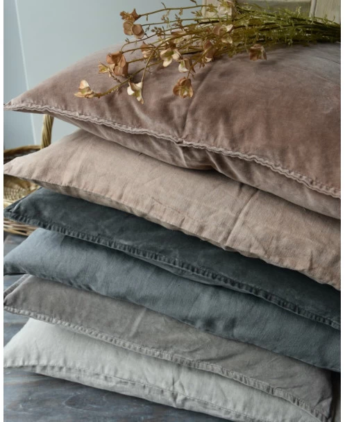 Velours kussenhoes ‘linnen’, IB Laursen. Deze mooie kussenhoes van een velours stof heeft een mooie warme kleur ‘linnen’. Het kussen is vierkant en past goed samen met de rechthoekige ‘linnen’ kussenhoes die met een linnenlook stof is gemaakt. Ook is de kussenhoes goed te combineren met de Thunder grey en de Burned rose kleuren.