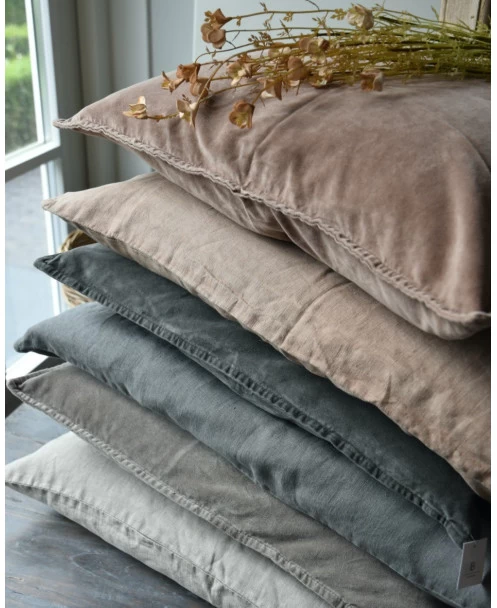 Velours ’thunder grey’ vierkante kussenhoes, IB Laursen. Deze mooie diepe kleur ‘Thunder grey’ is een donkere grijze kleur die met een velours stof gemaakt is tot een vierkante prachtige kussenhoes. De kussenhoes past helemaal bij het rechthoekige model die met een linnenlook stof is gemaakt, om zo samen een mooi set te vormen. Ook staat de kleur erg mooi bij de Burned rose en de Linnen. De kussenhoes wordt exclusief binnenkussen geleverd, zodat u gemakkelijk met de seizoenen mee van kleur kunt veranderen in uw woning.