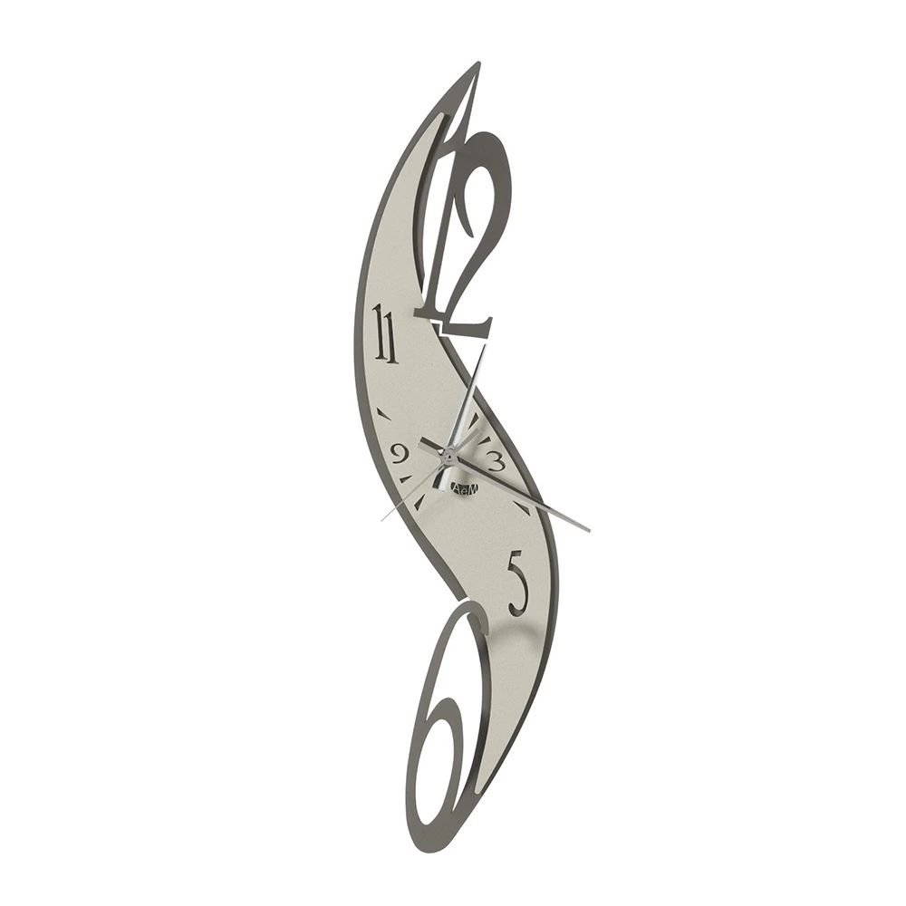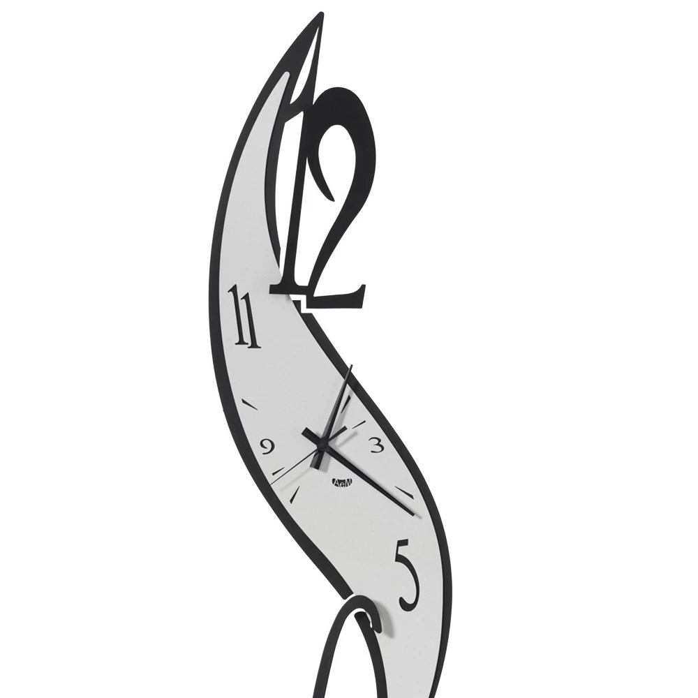 Deze wandklok wordt gekenmerkt door een origineel ontwerp vanwege zijn kronkelige vorm die herinnert aan het profiel van de letter “S” en zich verticaal ontwikkelt, zodat zelfs de minder ruime muur zijn verfijnde lijn kan herbergen.