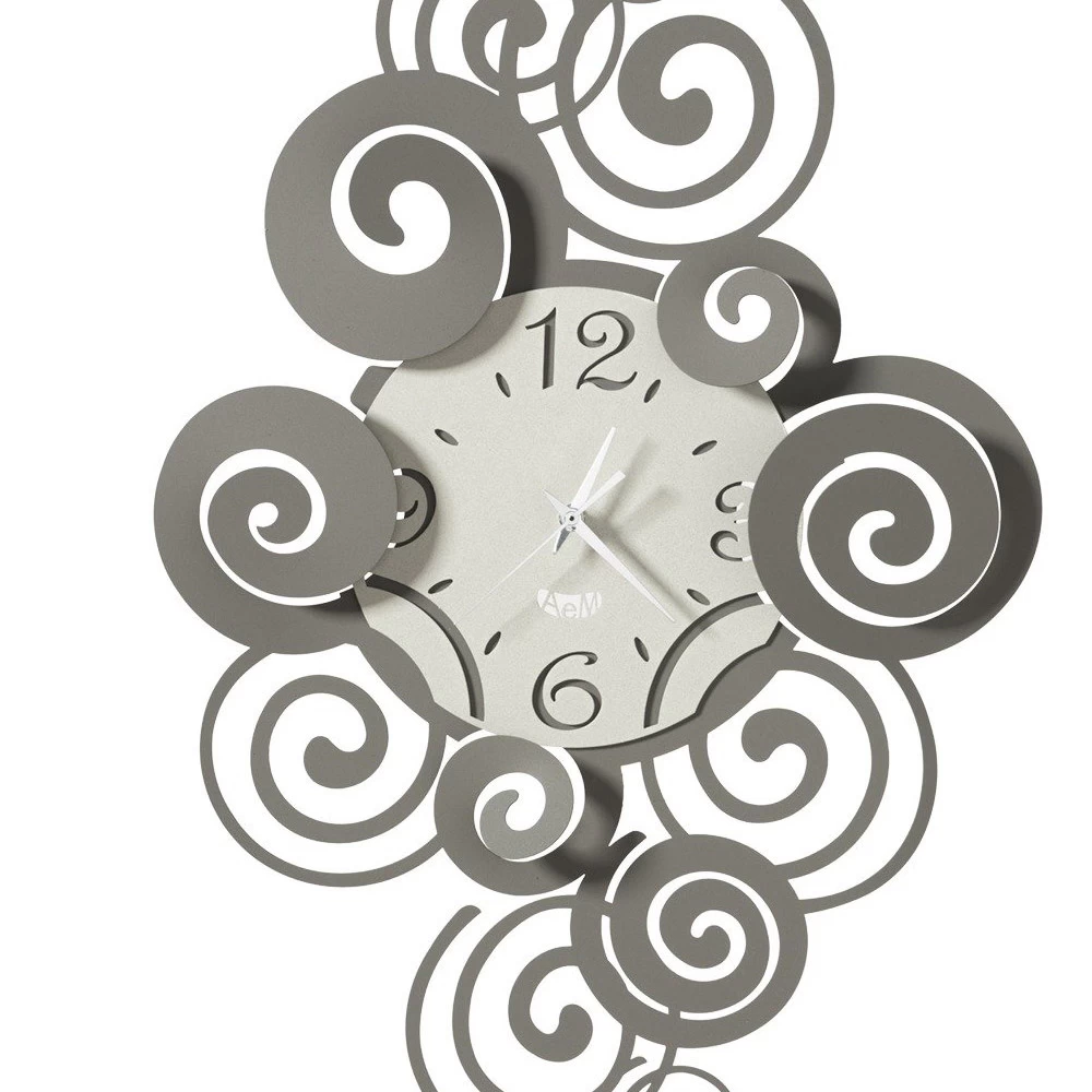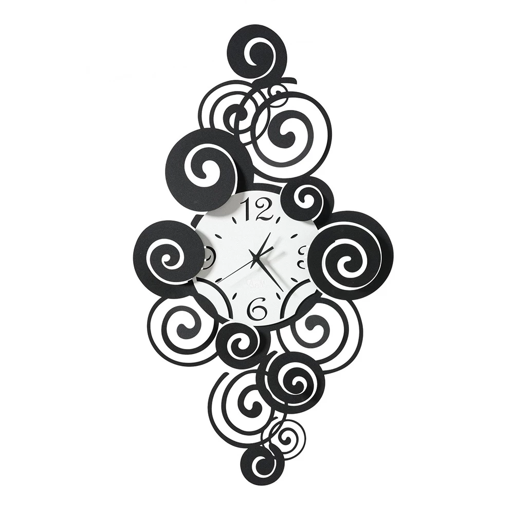 Deze wandklok heeft een dynamisch ontwerp dat herinnert aan de sierlijke bewegingen van klassieke dansers met zijn kronkelende en wuivende lijnen.