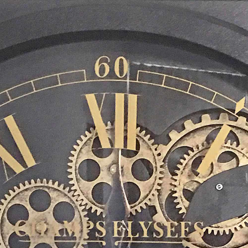 Wandklok met een vierkante vorm in staal en glas, vintage design.