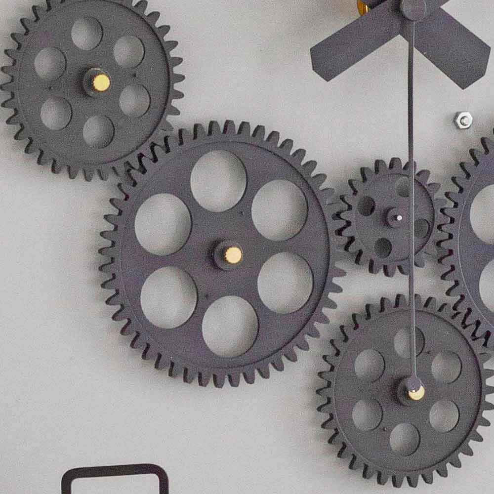 Wandklok in vintage stijl gemaakt met structuur van staal en glas.