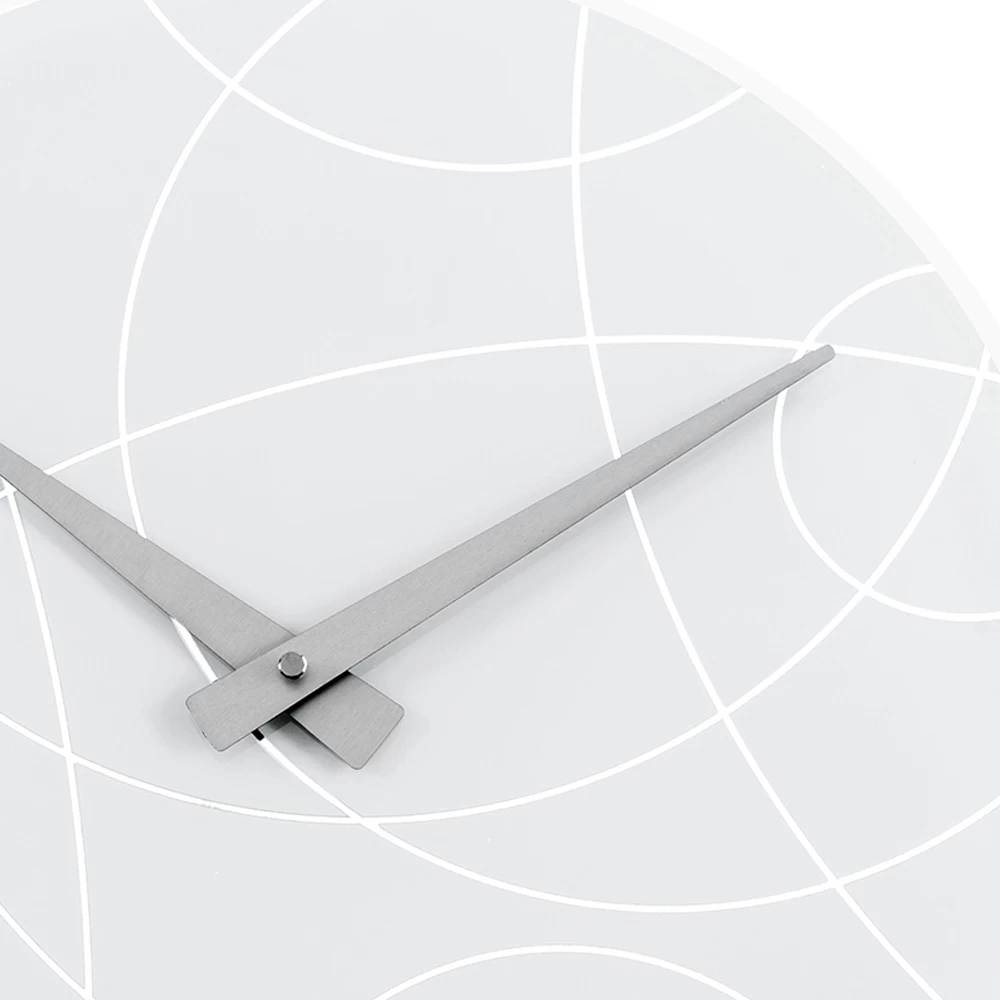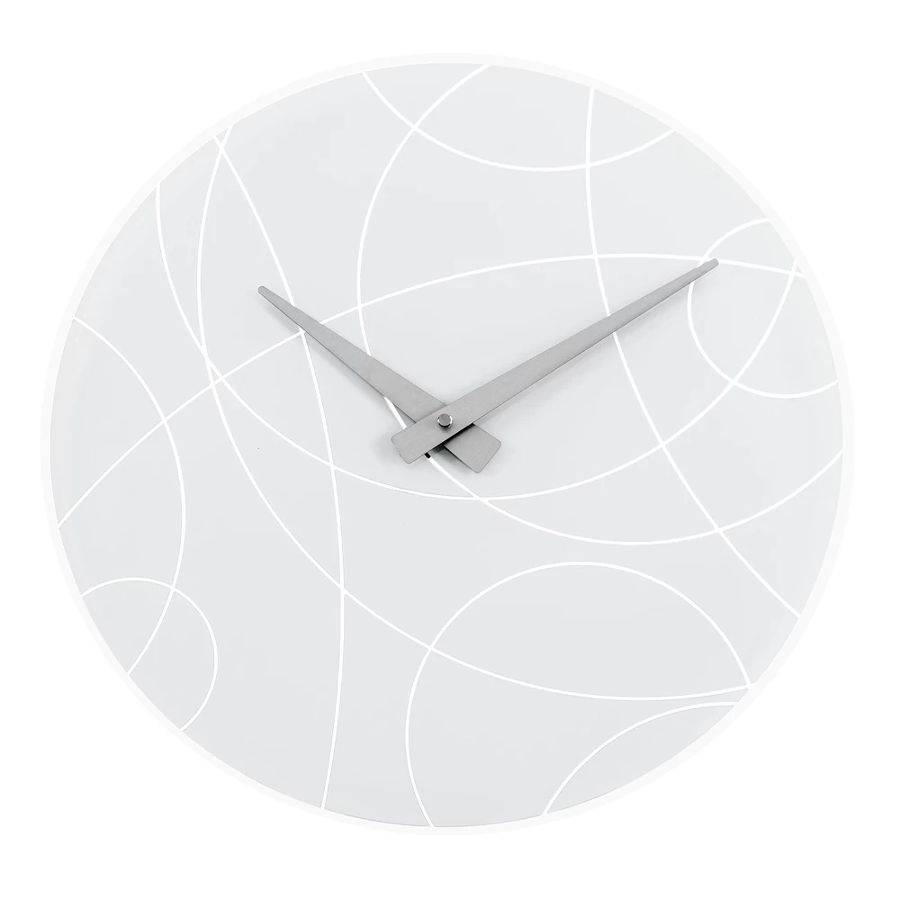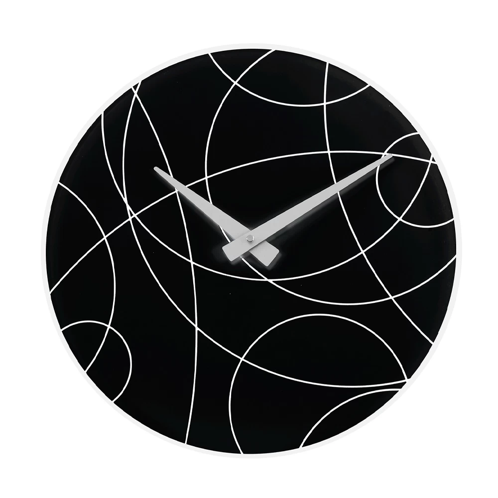 Deze ronde design wandklok is gemaakt van acrylkristal van tweekleurig nieuw polymeer: de basis, in full colour, wordt versterkt door de transparante gieting op het oppervlak, versierd met frezen die de kostbaarheid van het materiaal versterken.