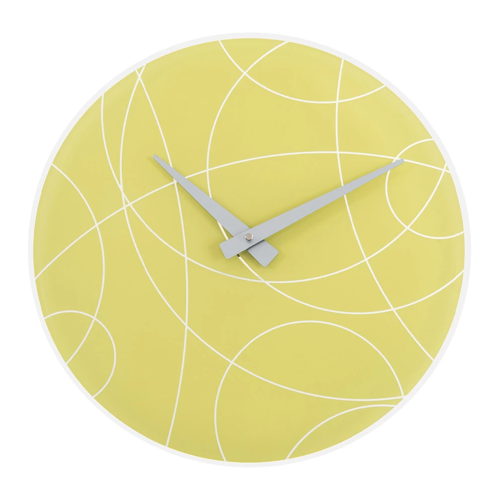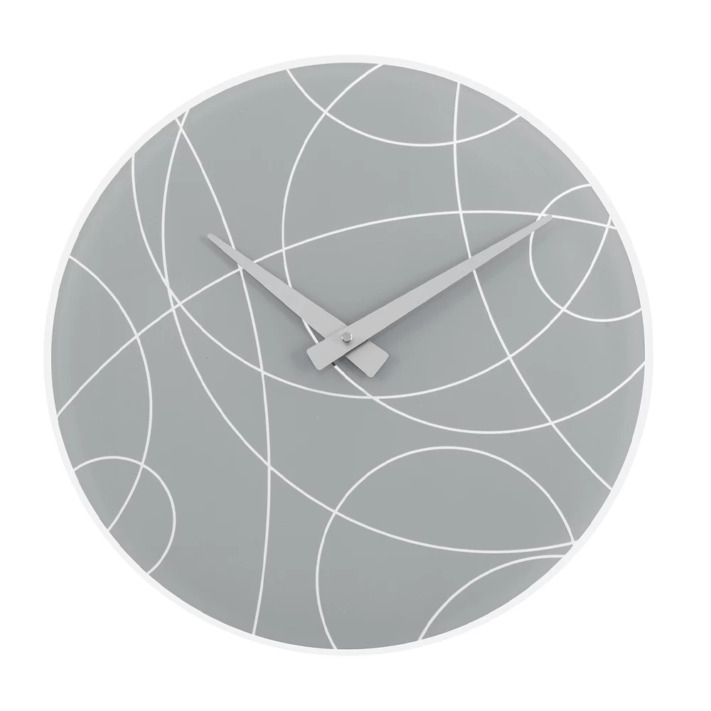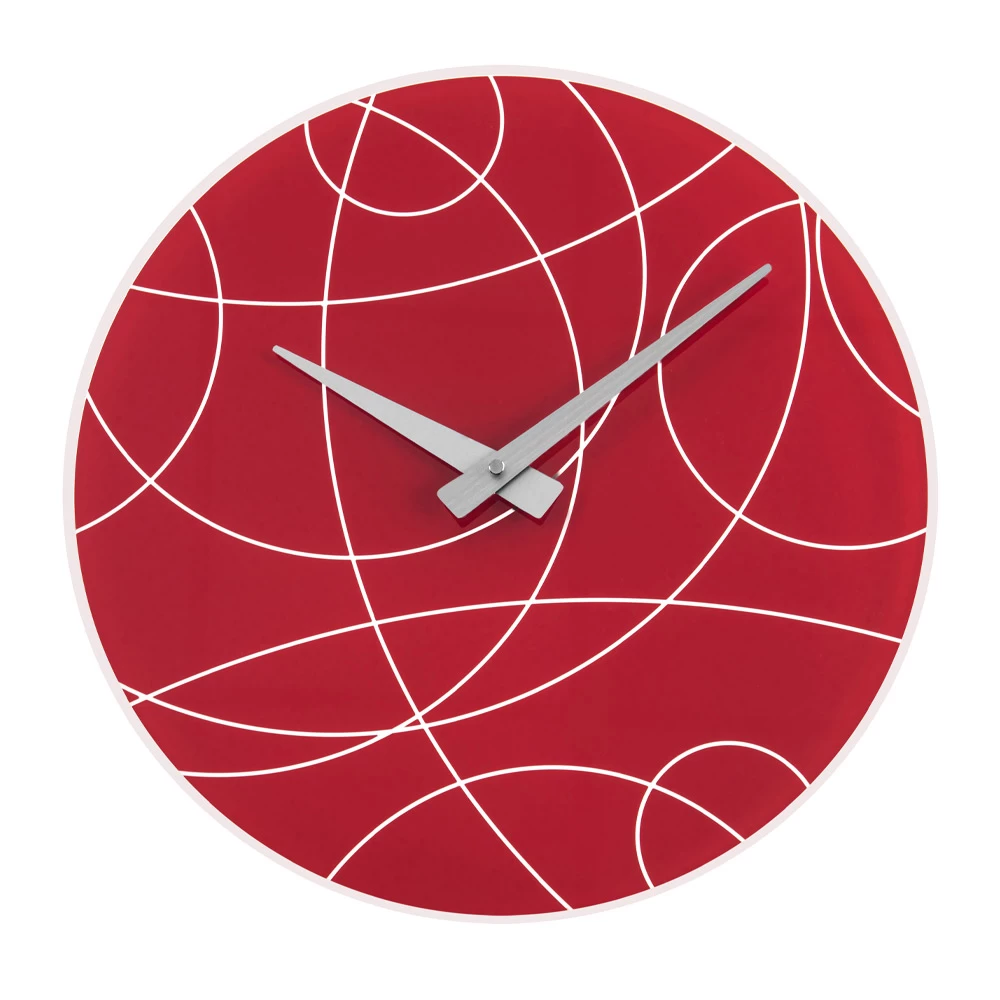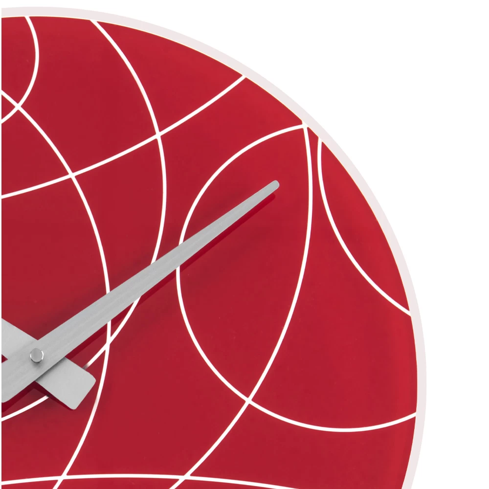 Ronde wandklok in gekleurd plexiglas en gebogen lijnen van decoratie, gemaakt in Italië.