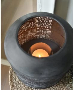 Groot Rond Metalen Windlicht Met Sierlijk Glooiend Gaatjes Patroon