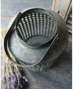 Groot Metalen Windlicht Met Weefpatroon En Hengsel, Vierkant