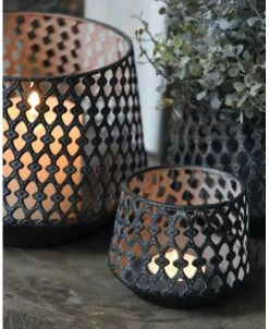 Sfeervol Windlicht Met Mooi Gaatjes Patroon En Poeder Goud Accenten