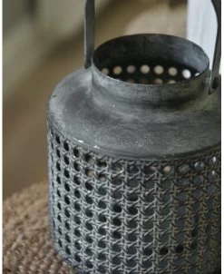 Windlicht Met Hengsel Van Metaal Met Geweven Gaatjes Patroon