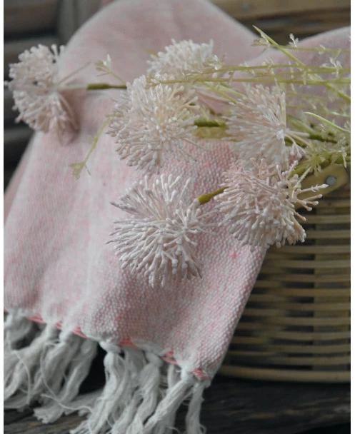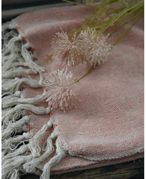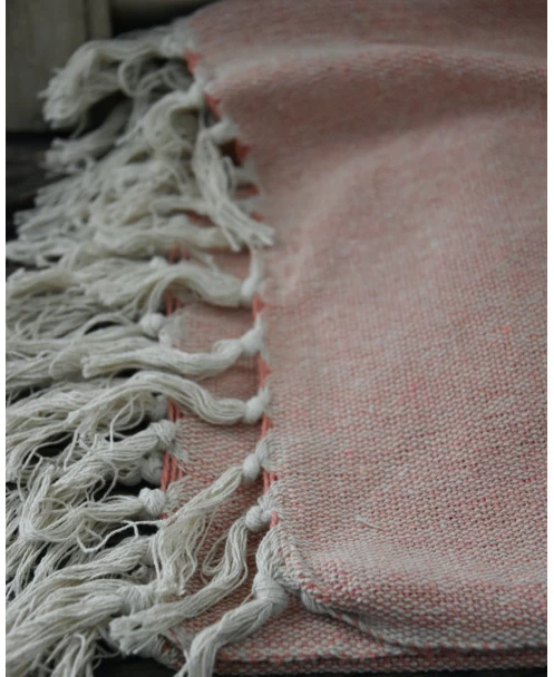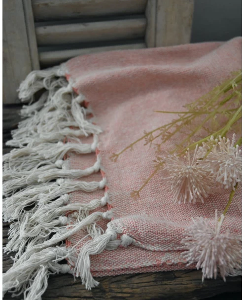 Woonkleed cream/faded rose met kwastjes, IB Laursen. Deze sprei/plaid heeft een mooie in elkaar geweven roze en crème kleur. Het woonkleed heeft aan de uiteinden kwastjes in de crème kleur. Het kleed kan mooi worden gedrapeerd over een stoel of mand, maar is zeker ook heerlijk om op een kille avond over je benen te leggen.Â